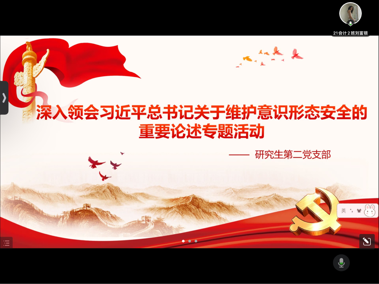 8月29日,亚博取款曝顾秒到账研究生第二党支部通过腾讯会议开展了本月主题学习活动,集中学习了习近平总书记关于做好意识形态工作的重要论述,并开展红色革命教育基地线上探访活动。支部书记杨腾辉主持活动,支部全体党员同志参加活动。