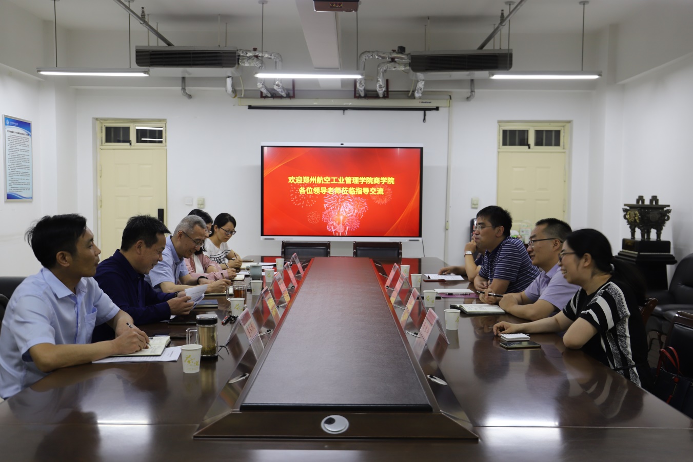 6月18日,郑州航空工业管理学院商学院院长李晓东、副院长闫俊周等一行四人到亚博官网就研究生教学培养有关工作进行交流座谈,学院党委书记贺捷、院长潘克勤、副院长申香华、李长秋及研究生管理办公室有关人员参加了座谈会。